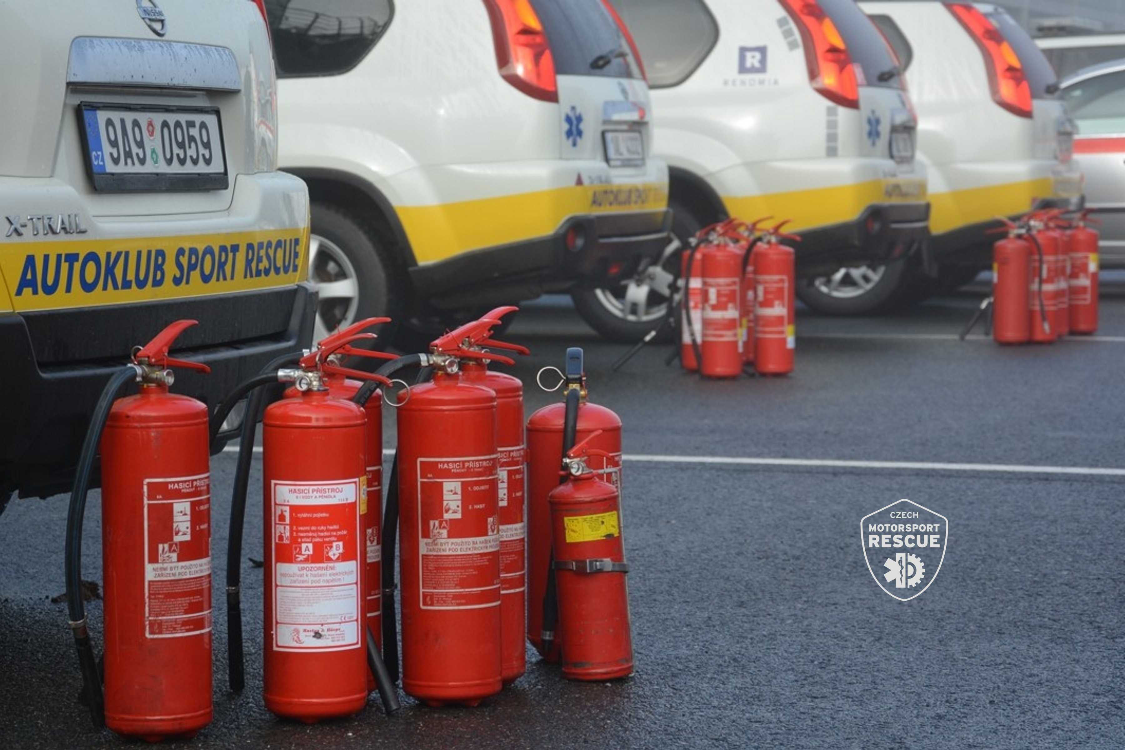 Samozřejmostí jsou příruční hasící přístroje v dostatečném množství a velikostech náplně. Veškerá povinná výbava záchranného vozidla je specifikována v požadavcích FIA pro jednotlivé disciplíny, které dále upřesňují Národní sportovní řády, konkrétně příloha 12. |